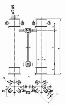 | 型號 | 冷卻面積m2 | a | b | c | d | e | f | g | m | o | d3 | D | DN1 | DN2 |